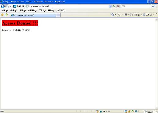 在有些情況下,您可能希望把被禁止的頁面重定向到另外一個(gè)網(wǎng)址去。比如:當(dāng)用戶訪問一個(gè)被禁止的娛樂網(wǎng)站時(shí),自動(dòng)把網(wǎng)頁重定向到公司的工作網(wǎng)站。
