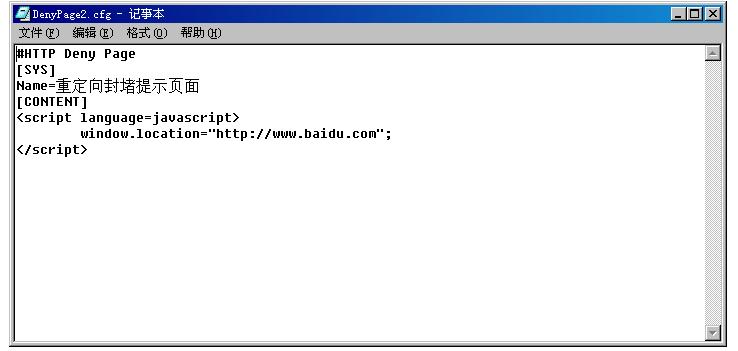 2. 打開config/DenyPage文件夾,用記事本編輯一個(gè)“封堵提示頁面”的配置文件。
