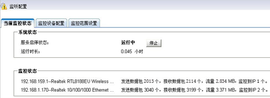 2). 在“當(dāng)前監(jiān)控狀態(tài)”中可以看到兩個(gè)局域網(wǎng)的監(jiān)控狀態(tài)