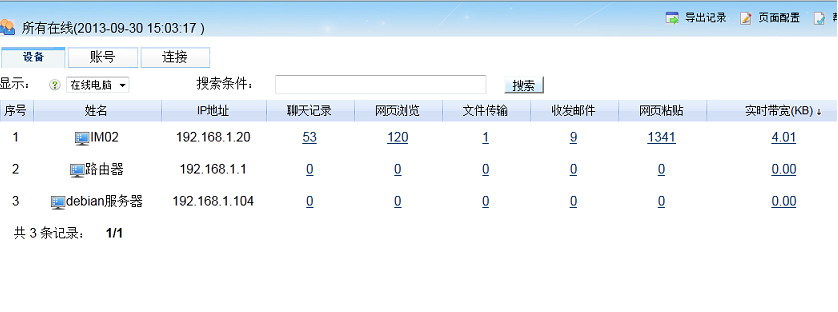 我們重新定義了“所有在線”頁面,使您可以根據(jù)“設備”“賬號”“鏈接”進行切換查看。局域網(wǎng)網(wǎng)絡狀況一目了然。