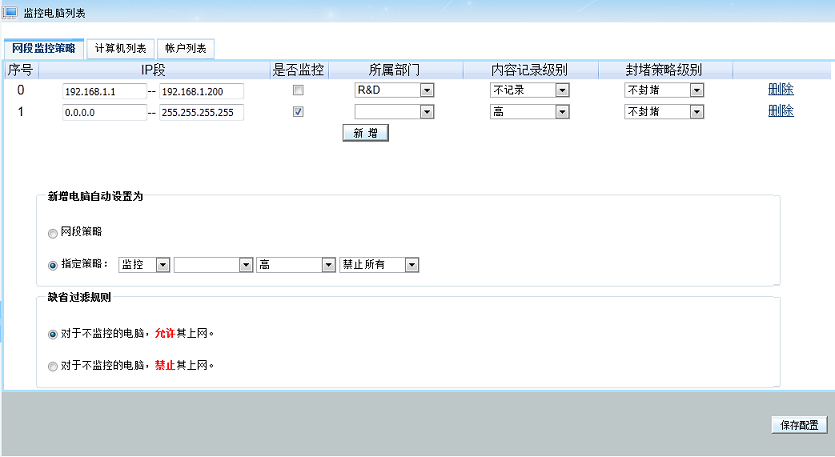 8. 優(yōu)化了對新增電腦、網(wǎng)段默認策略的配置