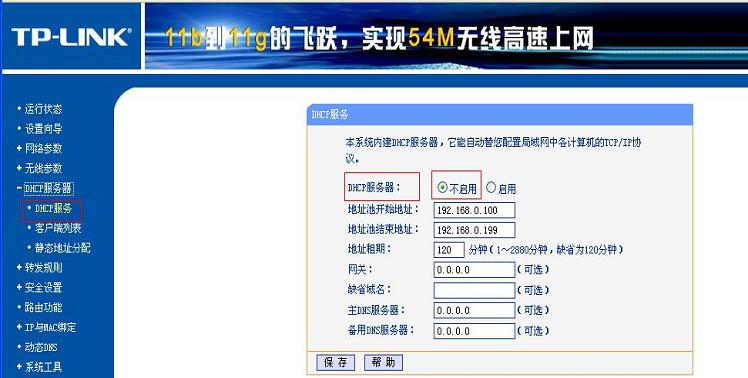 Win7上配置了網(wǎng)絡(luò)共享后,會自動啟動DHCP服務(wù),為避免沖突,需要將無線路由器的DHCP服務(wù)器關(guān)閉。如圖: