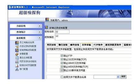 如果要禁止聊天軟件和FTP上傳文件,只需選擇“文件傳輸”標(biāo)簽,在禁止選項前打勾即可