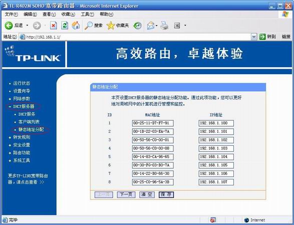 如果您確實(shí)需要通過自動(dòng)分配IP上網(wǎng),同時(shí)又啟用了IP-MAC綁定,那么你需要配置您的DHCP服務(wù)器給每臺(tái)電腦分配固定的IP地址。以TP-LINK為例,打開DHCP服務(wù)器——靜態(tài)地址分配,在分配列表中填寫您為每一個(gè)MAC地址分配的IP,保存設(shè)置。這樣,DHCP服務(wù)器每次為同一MAC自動(dòng)分配的IP地址將是固定的。