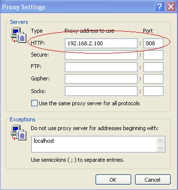 This tutorial will guide you to configure client computers to access internet via WFilter proxy server. For all below examples, we suppose the proxy server ip address is "192.168.2.100".