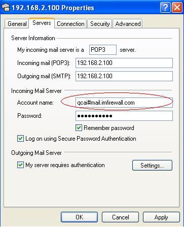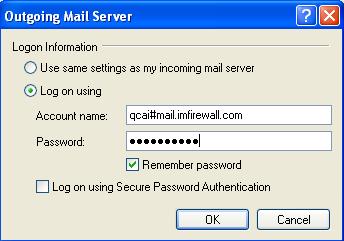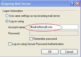 The "Account name" format of "Logon Information" shall be "username#real_smtp_server".
