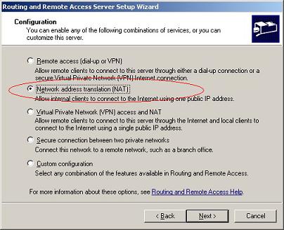 Routing and Remote Access is a network service in Microsoft Windows Server 2008, Windows Server 2003, and Windows 2000 Server that can provides Network address translator (NAT) for connecting a private network to the Internet.
