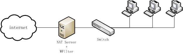 WFilter can be installed in a windows gateway server to monitor and filter internet activities.