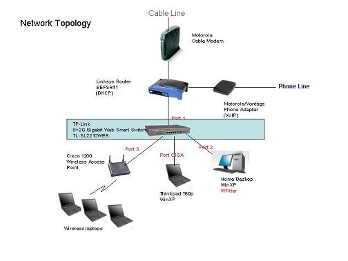 Network topolgoy of a typical network contains both wired and wireless networks: