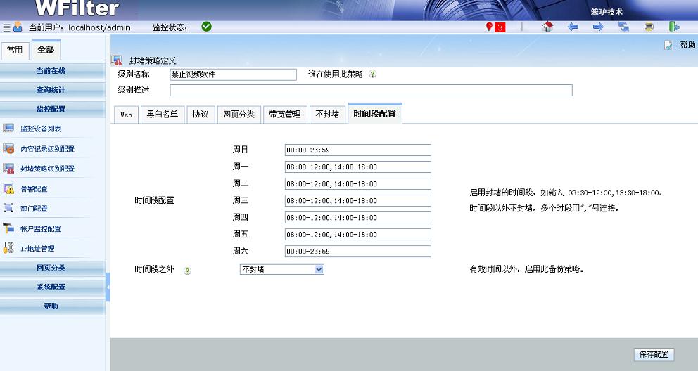 - 支持時間段配置,可以在工作時間和非工作時間采用不同的上網(wǎng)策略。