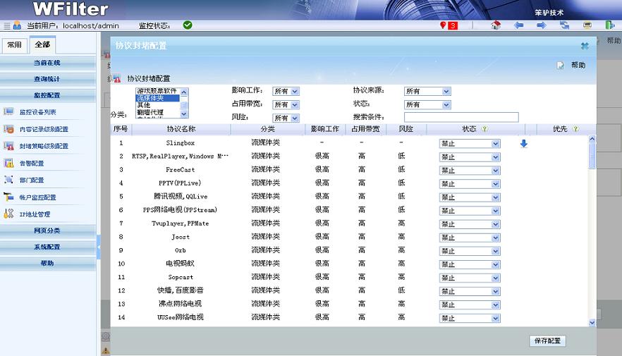 - 支持管理網(wǎng)頁、聊天、郵件、流媒體、游戲股票、P2P下載等多類上網(wǎng)行為,支持500多種協(xié)議和軟件。