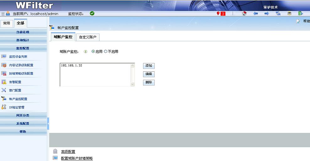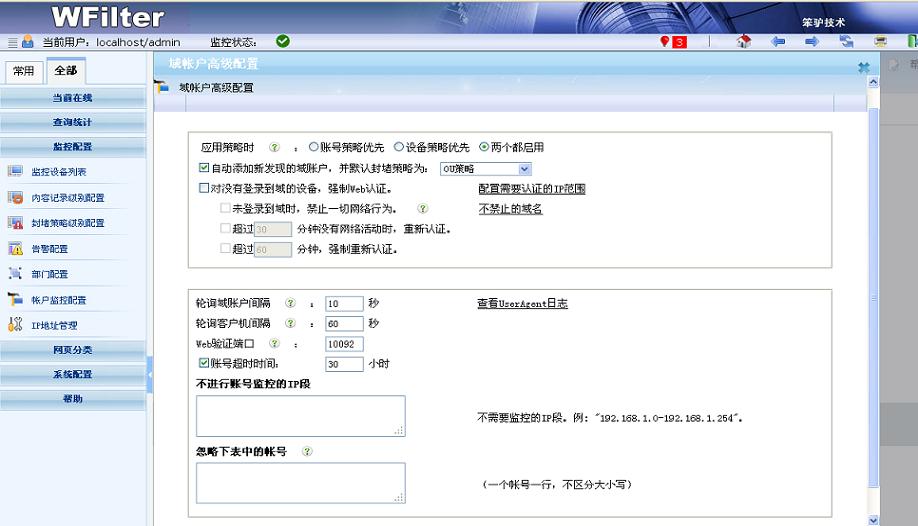 - 可以基于IP地址、MAC地址或者域賬號進行監(jiān)控,給不同設備(電腦或者移動設備)或者不同員工設置指定的上網(wǎng)策略。