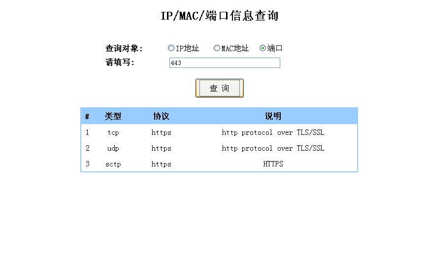 | 插件名稱: | IP/MAC/Port信息查詢 |